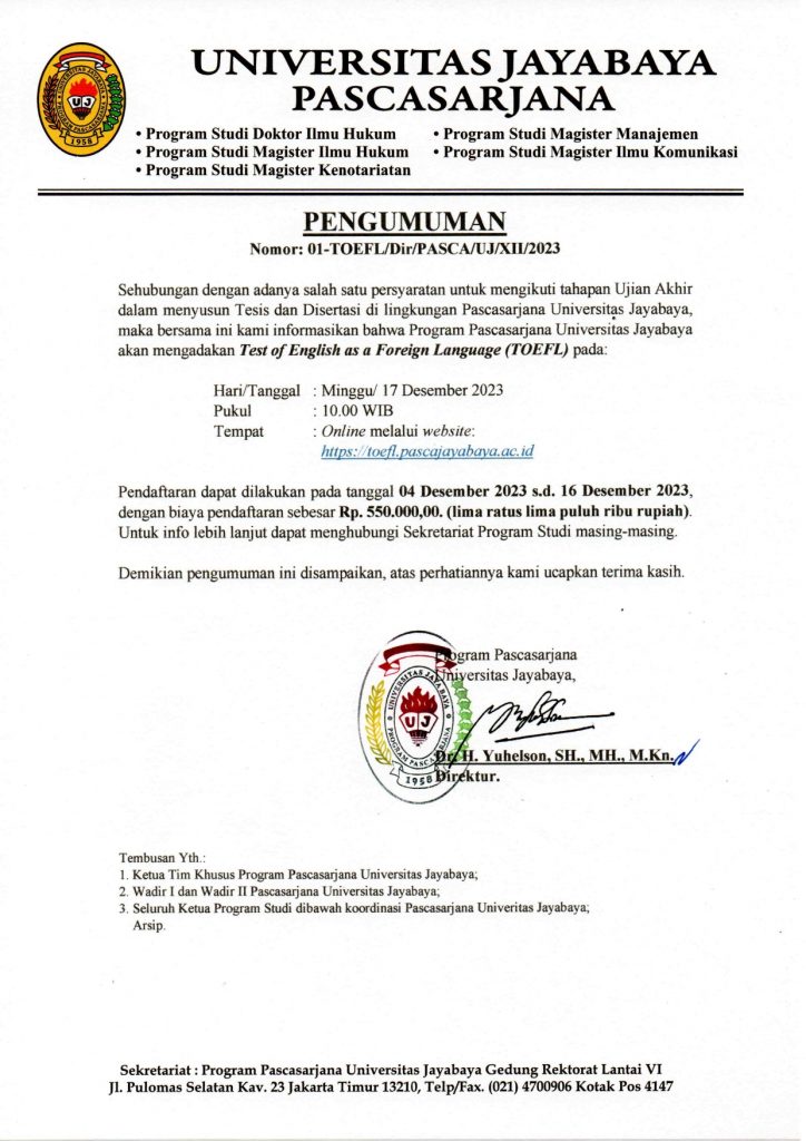 PASCASARJANA UNIVERSITAS JAYABAYA
